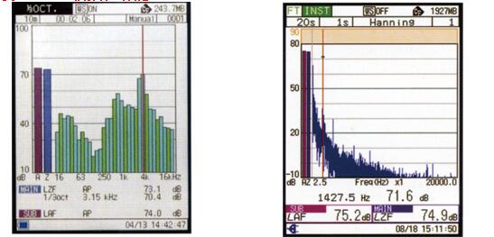 瞬時(shí)聲壓電平:Lp 除了主處理項(xiàng)目外,能選擇下列項(xiàng)目之一作同時(shí)處理 C-加權(quán)等效連續(xù)聲壓電平:LCeq C-加權(quán)峰值聲級(jí):LCpeak Z-加權(quán)峰值聲級(jí):LZpeak 脈沖加權(quán)平均聲級(jí):LAreq*2 每5秒間隔最大電平的功率平均:LAtm5 附加處理的頻率加權(quán)與次通道的頻率加權(quán)同步。所以當(dāng)次通道有A加權(quán)時(shí),能選擇LAtm5。當(dāng)選擇C加權(quán)(Z加權(quán))時(shí),能選擇附加處理LCeq、LCpeak和LZpeak。 |