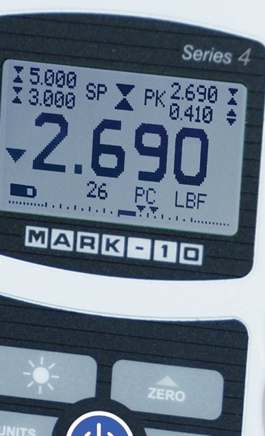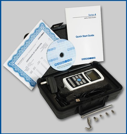 Series 4系列數字測力計用于拉力、壓力的測量,可應用于汽車、電子、醫療、制造等行業,測量范圍可從0.5N-2500N; Series4系列測力計取樣速度高達3000Hz,在寬泛的量程下可確保測量結果的準確性。精度為±0.2%FS±1個分辨率,大屏幕帶背光的液晶顯示屏幕,可清晰的顯示測量讀數; 數據可通過USB,RS-232,Mitutoyo,模擬輸出端口傳輸至PC; 儀器有存儲功能及統計功能,可存儲50個測量數據,上、下限報警功能可用于pass-fail快速測試; 外部觸發功能。 儀器過載保護為滿量程的150%,測量時屏幕有模擬加載圖形顯示用于提示加載進程,顯示屏幕可逆,可手持式操作也可放在測量支架上操作。 測力計標準配置MESUR TMLite數據傳輸軟件。軟件連續記續測量數據也要記錄單位測量數據。測量數據可一鍵式導入Excel進行圖形編輯。