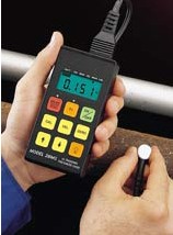 測量范圍:0.15~25.40mm,英制/公制可選擇, 分辨率:20.00mm以下時為0.001mm;20.00mm以上時為0.01mm 聲速范圍:1250~10000 m/s 測量模式:回波-回波模式、界面-回波模式、對單點測量每秒可讀4次、掃描模式每秒可讀16次 顯示: 4.5位數字液晶顯示屏(LCD), 背光可選 外殼:擠壓鋁制外殼,底蓋為鎳板鍍鋁,防止碰傷,環保封裝 重量:帶電池300克 尺寸:63.5x114.3x31.5mm 工作溫度:-30~50℃ 電源: 2節1.5V堿性電池或1.2V鎳鎘電池(AA), 堿性電池最多可用200小時,鎳鎘電池可用130小時