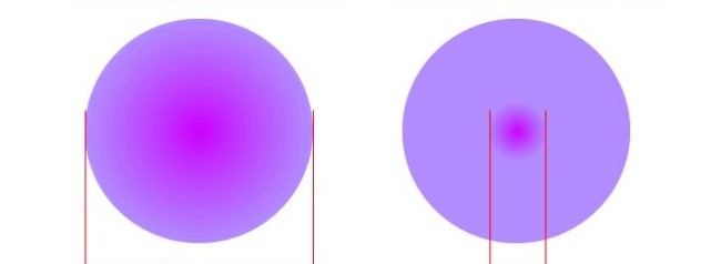 38cm處光斑直徑分別為(左20cm),(右2cm)