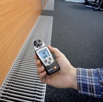 testo 410-1用于風速和空氣溫度測量,帶40mm直徑的葉輪風速探頭,讀數鎖定功能,顯示最大值/最小值,計算室外的風冷溫度。