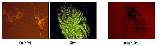 體液(血液、蛋白、精液、尿液)、咬傷記、擦傷、頭發、纖維、氰基丙烯酸鹽粘合劑 |